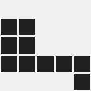 In far right bottom corner of grid place a black block. Place a block right next to this one in the same row. In the next row(second from bottom) place 5 black blocks spanning across this row. In the next row place one to the far left, leave 2 blank spaces, then a block and a block to complete this row.